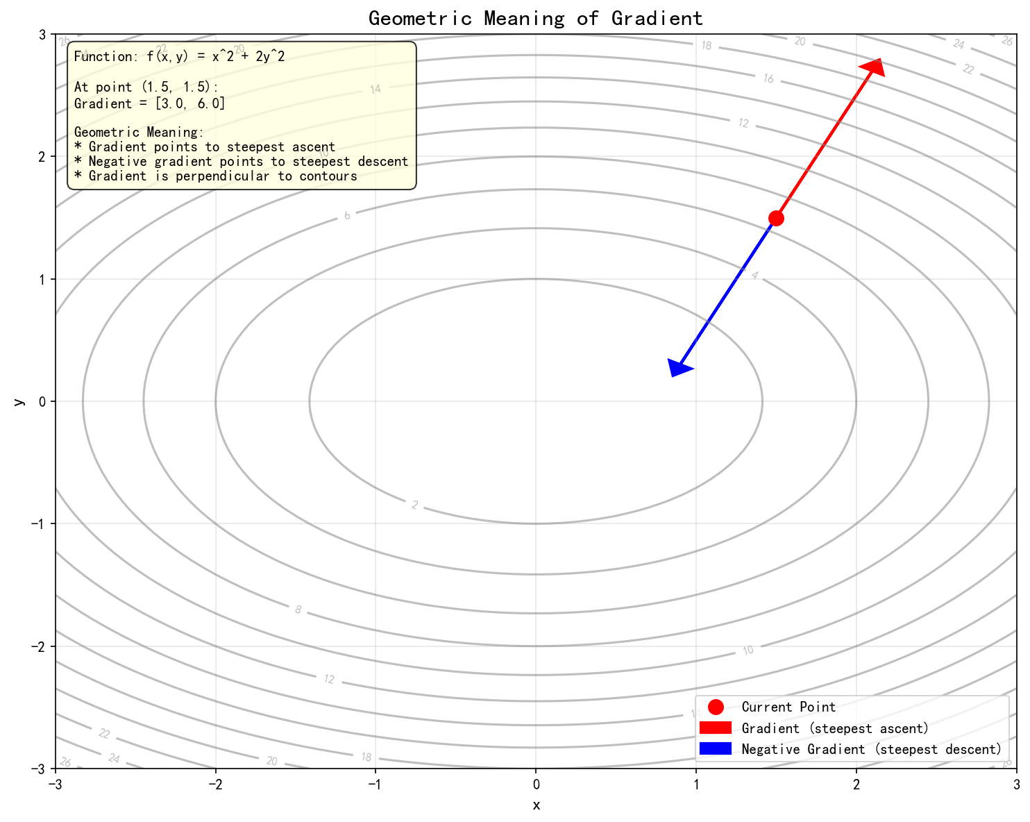 │ • 负梯度指向函数下降最快的方向 │