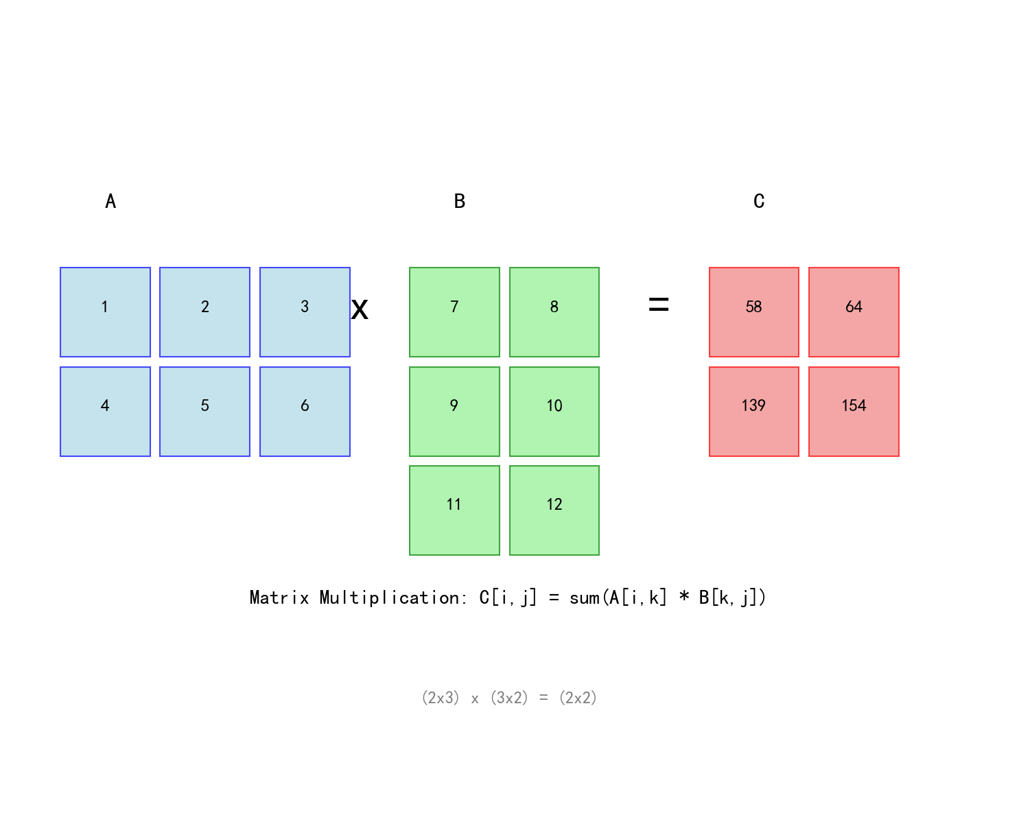 | 矩阵乘法 | C = AB | 全连接层、注意力 |