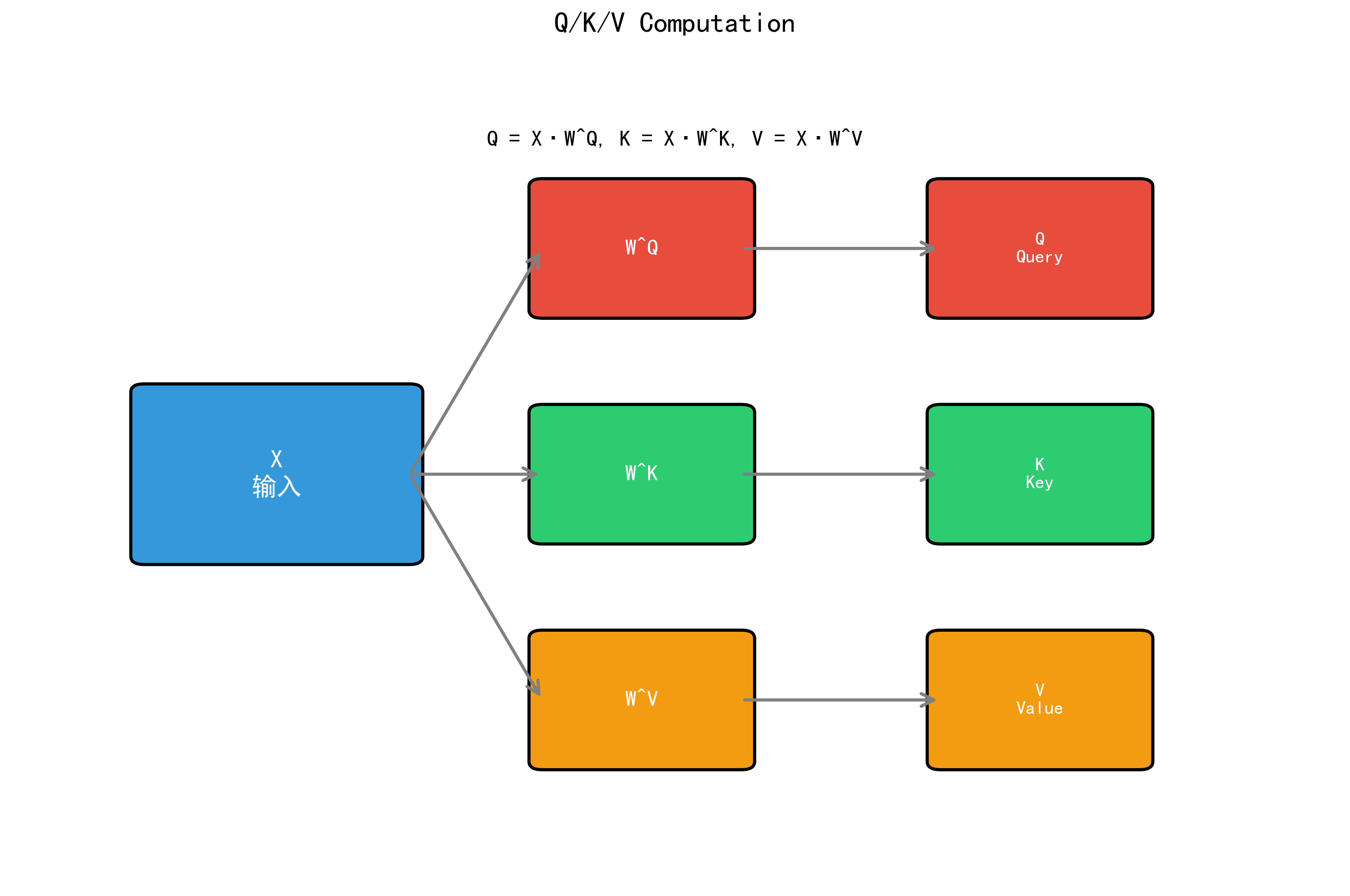 注意力机制的核心是三元组 (Query, Key, Value):