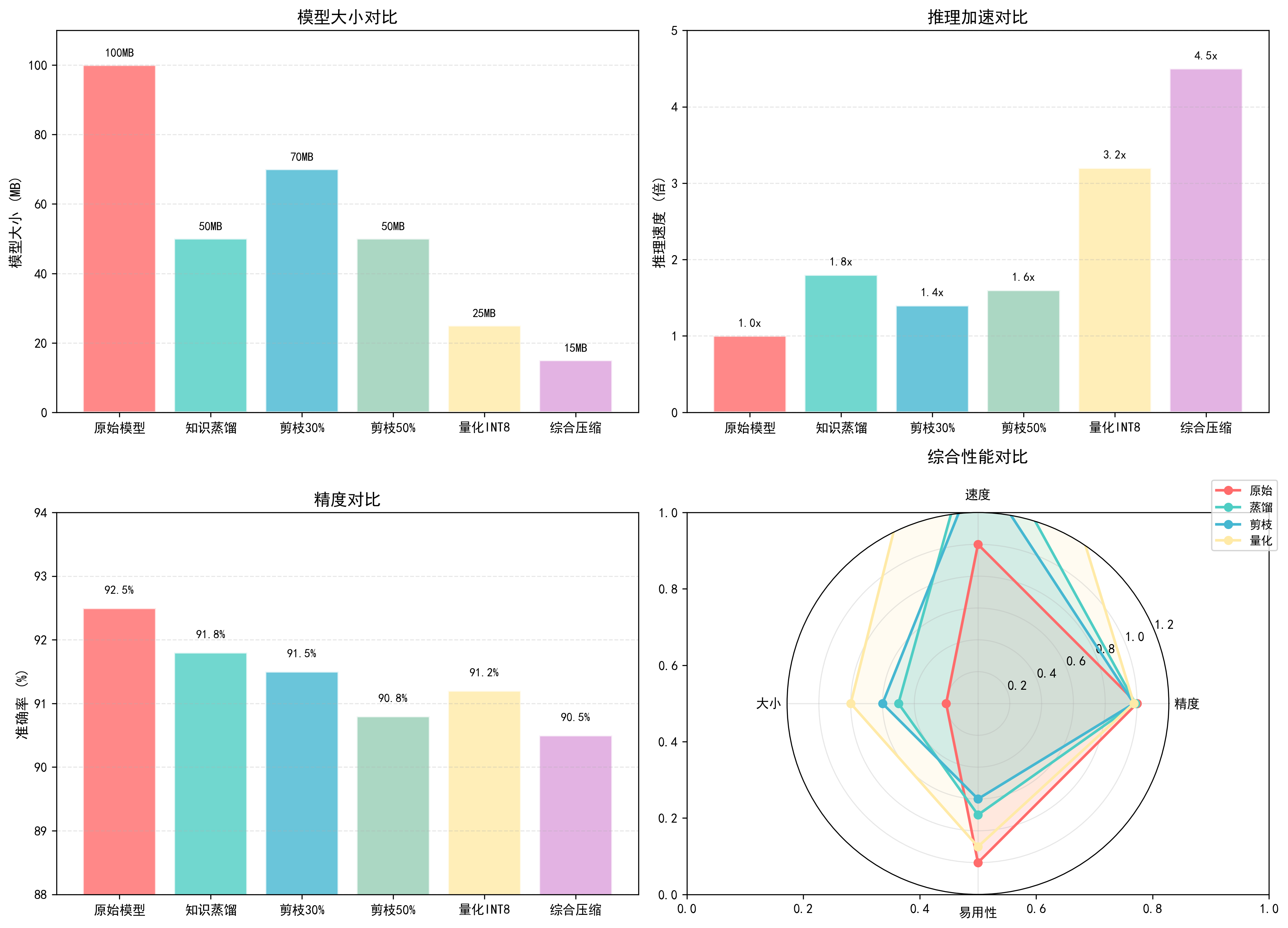 学习时间: 约 6-8 小时 难度级别: ⭐⭐⭐⭐ 中高级 前置知识: 深度学习基础、 CNN/Transformer 架构、 PyTorch 学习目标: 掌握知识蒸馏、模型剪枝、量化等主流模型压缩技术的原理与实现