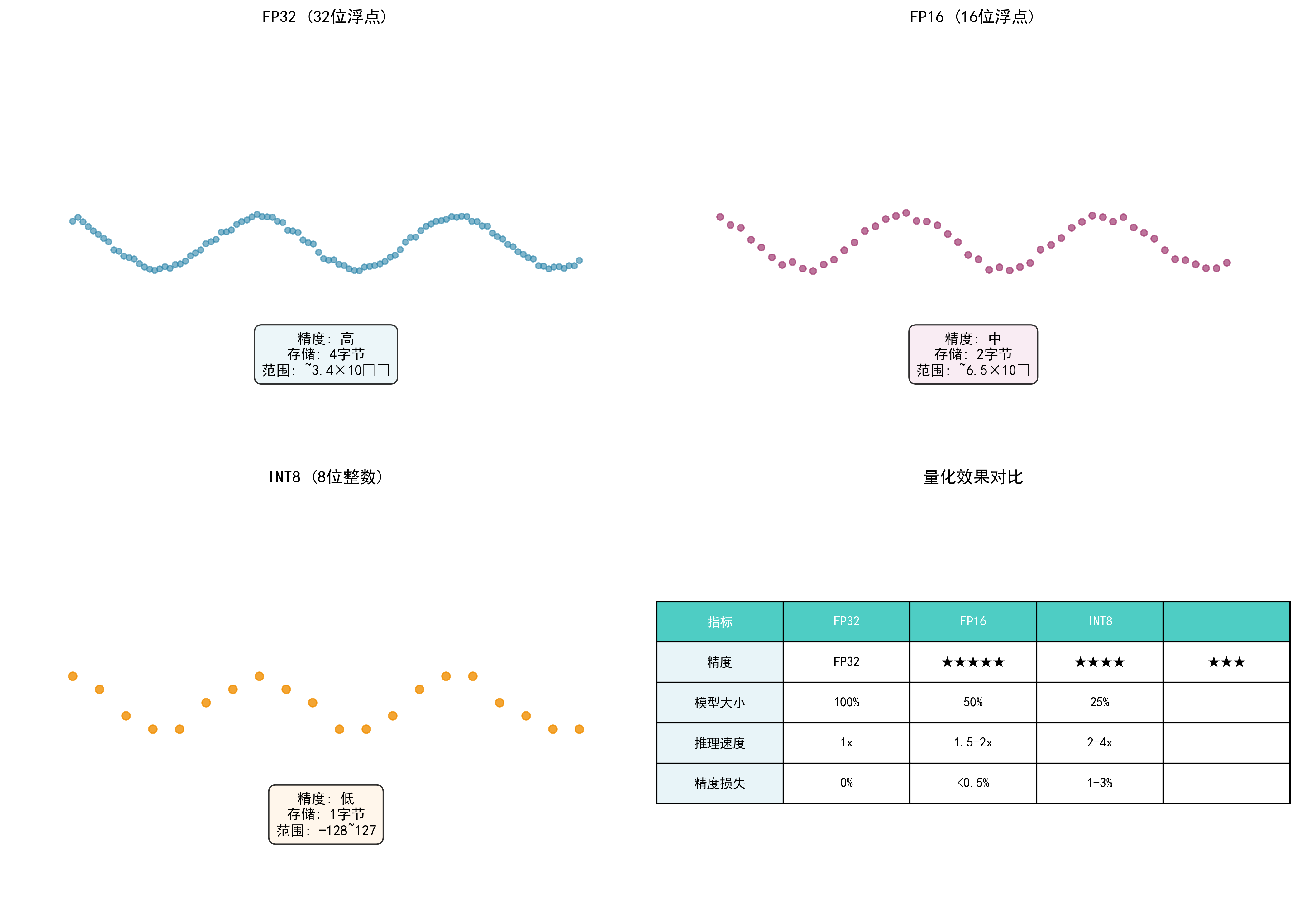 - 量化对比:在同一模型上分别应用动态量化、静态量化、 QAT ,对比精度和推理速度。