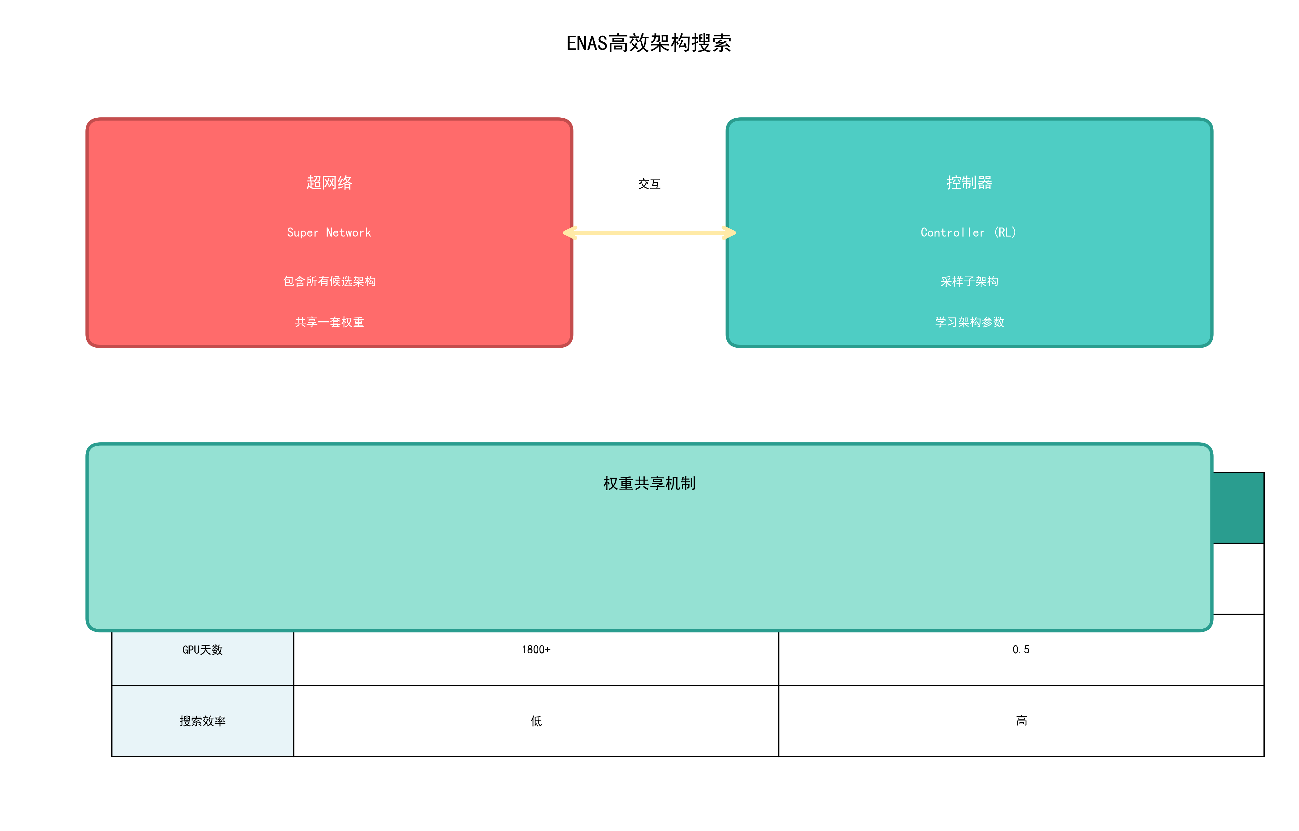 | 2018 | ENAS | 权重共享 | 0.5 |