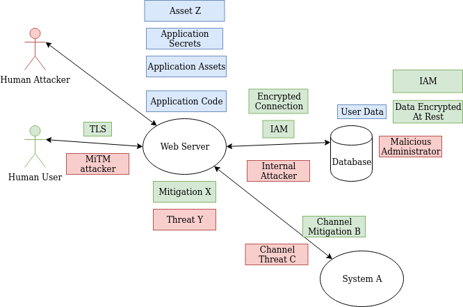 图源:项目内既有威胁建模示意图(人工复核:未见 AI 生成痕迹)。该图通过资产、威胁、缓解措施三类元素,帮助建立“威胁建模”视角。